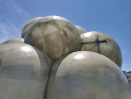 直島本村港には、海の駅なおしまの直線とは対照的に雲のような球形がランダムに形成された小さな待合室がつくられています。